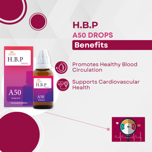 ALLEN A50 H.B.P. Drops is a homeopathic remedy designed to support healthy blood pressure levels. It contains a blend of natural ingredients carefully selected for their effectiveness.