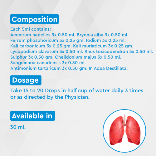 - Formulated to address symptoms of lung infections and respiratory discomfort.