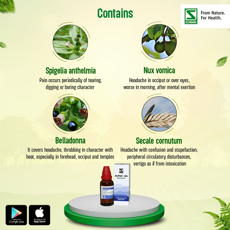 Dr. Willmar Schwabe India Alpha Ha (Head-Ache) 30ML is a homeopathic remedy designed to provide relief from headaches. It is formulated with carefully selected ingredients to address various types of headaches effectively.